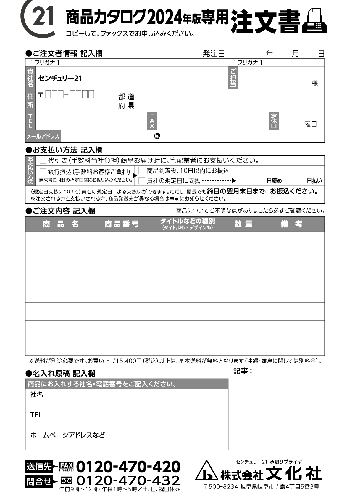 注文用紙のダウンロード